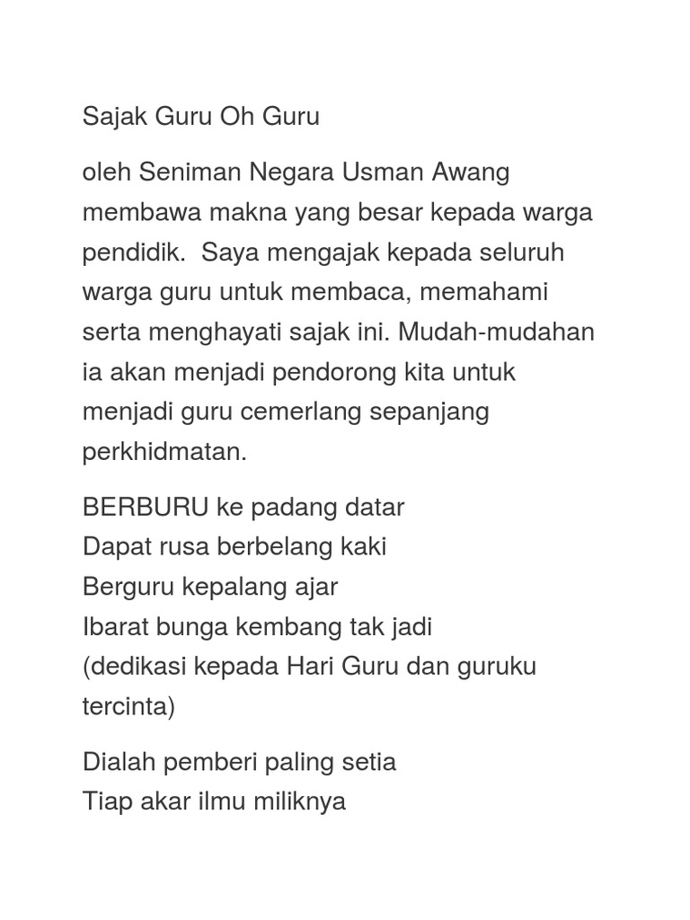 Orang Muda Suka Baca Sempena Sambutan Hari Guru 16 Mei Ayuh Sama Sama Kita Hayati Sajak Guru Oh Guru Oleh Sasterawan Negara Usman Awang Facebook